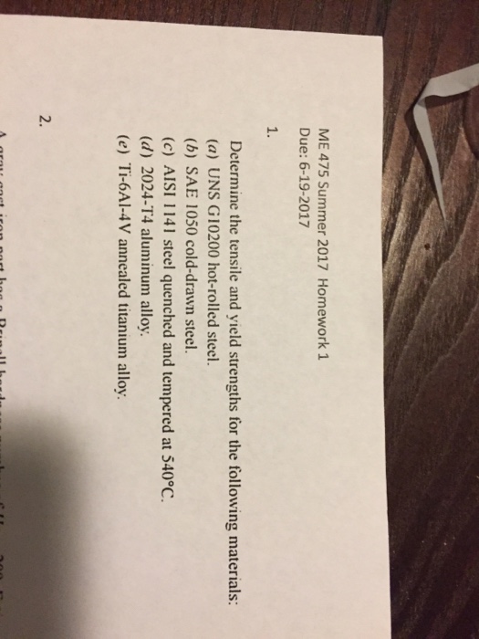 | Read Question 1 Determine The Tensile And Yield Strengths Chegg |
